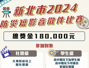 為喚起市民對防災的重視,新北市政府舉辦「新北市2024防災短影音徵件比賽」,今(23)日於市府3樓逗點實驗室辦理頒獎典禮,柯慶忠副秘書長主持,比賽旨在鼓勵市民發揮創意,通過短影音的呈現提高對...