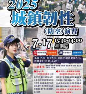 為提升全民敵情警覺及強化防空整備作為,2025城鎮韌性(防空)演習北部地區今(17)日13時30分至14時整,實施30分鐘警報傳遞與發放、疏散避難、交通及其他必要管制,並接續14時至15時,...