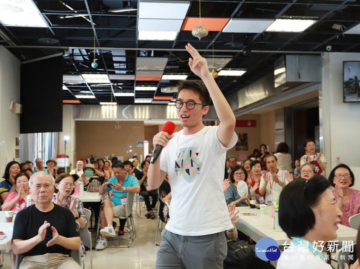 新北市民政局役男「旺年天團」帶來經典老歌、動感舞蹈及魔術表演,逗樂共餐銀髮長者