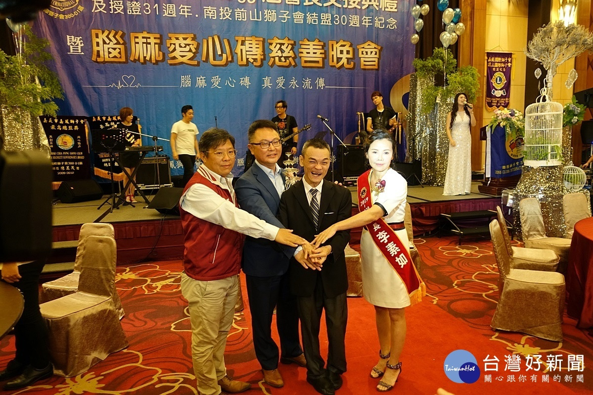 22日嘉鳳獅子會舉行第32、33屆會長交接典禮,同時為發揚獅友慈善大愛,特別舉辦「腦麻愛心磚慈善晚會」,以一萬元一塊愛心磚的方式,為腦麻永久家園募款,並且邀請到腦麻鬥士黃乃輝先生,藝人王瞳、艾成等成立的「87樂團」現場表演,神秘嘉賓陽帆更到場助陣,晚會鬧熱滾滾,獅友與各界善心人士捐款踴躍,超過了原本預計的目標200萬,最後累積募得315萬,為腦麻家園籌建經費累積了相當款項,腦麻協會理事長鄭榮文代表協會表達最誠摯的感謝。今日晚會開始之前,嘉義市長黃敏惠特別前往見證嘉鳳獅子會會長交接,並祝慈善晚會大成功!