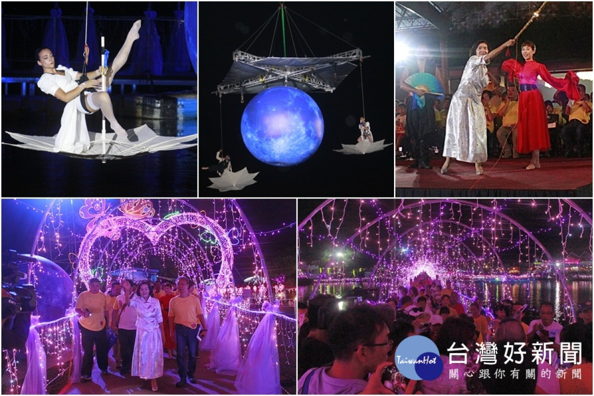 開幕活動中,先由牛郎、織女兩位舞者開場演出,緊接著浪漫音樂乍然迴盪,只見一個大圓球伴隨著兩位「VOVLA空中特技團隊」的舞者,從50公尺的高空到水面舞台,或上或下地翩然飛舞,演繹一段前所未見的愛情舞劇。