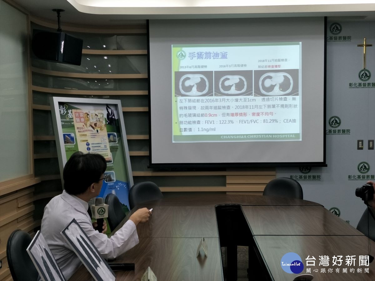 六旬王姓牧師夫婦雙雙檢出肺腺癌,經彰化基督教醫院胸腔外科主任王秉彥醫師收治,在複合式手術室中以3D影像單孔胸腔鏡進行手術,順利清除肺腺癌病灶。王牧師呼籲有肺癌家族病史的家庭,尤其父母親曾檢出肺癌的家庭是高危險群,子女務必定期接受肺癌相關篩檢。
