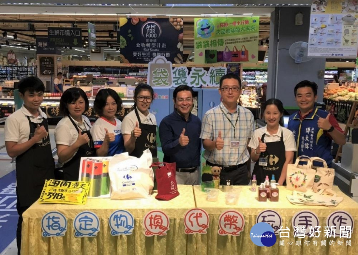 而參與本次二手袋循環再利用的業者代表「家樂福嘉義店」胡經理表示,推廣二手袋循環利用的活動很有意義,不僅讓完好堪用的二手袋重回賣場被再次使用,讓資源利用最大化,同時也能提醒至賣場購物的民眾應「自備、重複使用、少用」一次性的塑膠袋,而業者參與公共政策負起企業的社會責任,一同宣導、推動好的政策,藉由政府、市民和企業三方合作達到環境保護的功效,也是為下一代和地球盡一份心力。