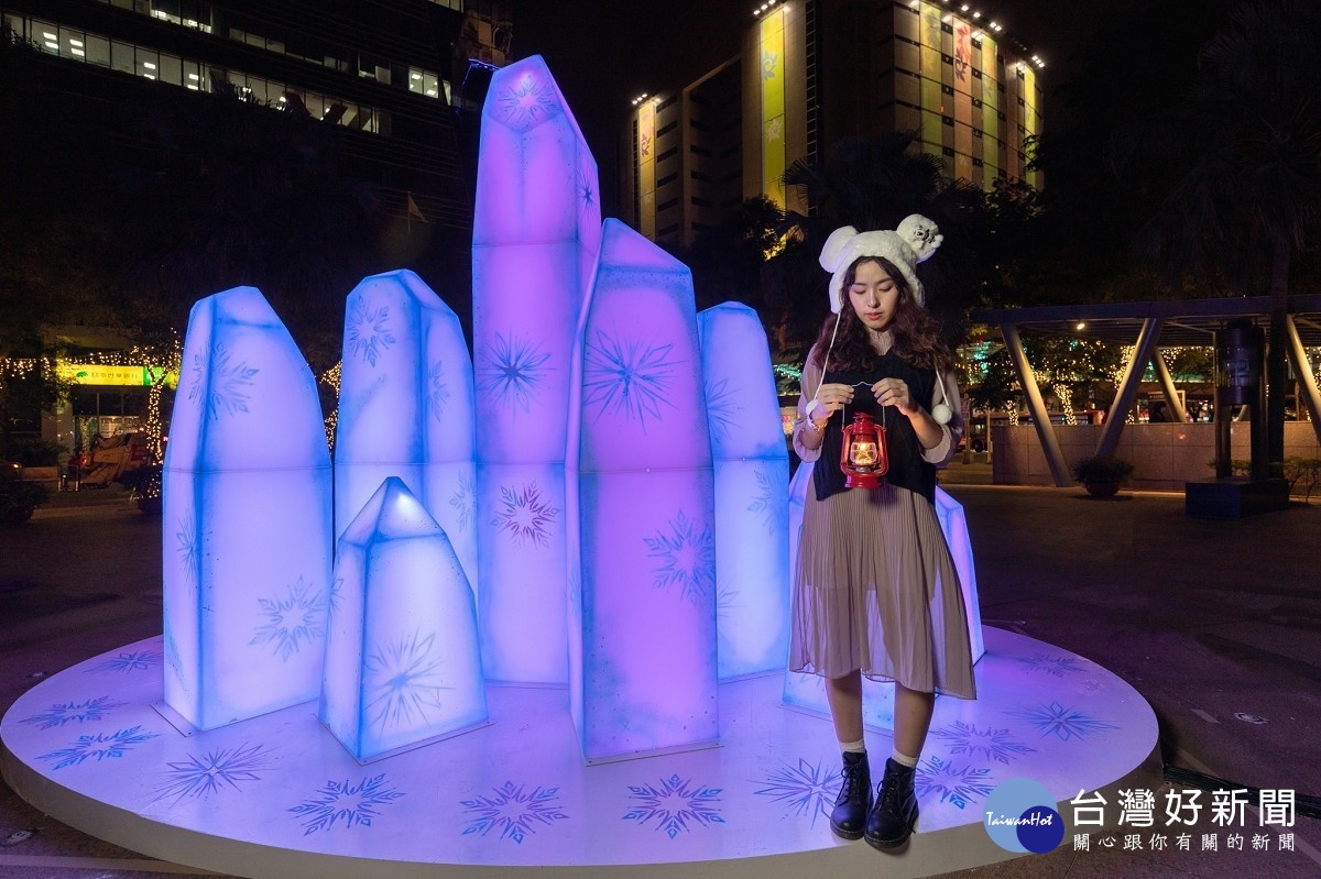 新北市府今年在市民廣場燈區「桑塔熊的魔法小鎮」設置充滿北國雪景氣氛的「冰雪奇蹟」,以及海浪構造的「深海奇緣」藝術裝置,就要讓民眾感受新北耶誕獨有的冬季魅力與時空穿梭感!「冰雪奇蹟」的冰柱結合繪畫藝術,透過光線穿透折射,營造雪花片片的濃厚耶誕味!在「深海奇緣」中,桑塔熊化身魔法精靈,帶領大家穿梭時空、化身魚群悠遊在絢麗浪花中,耳邊迴盪的海洋樂章,更能讓民眾身歷其境地沉浸在大海奇幻魅力中。