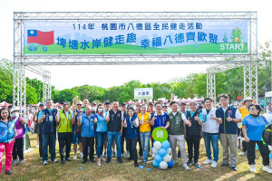 桃園市副市長蘇俊賓19日前往八德埤塘自然生態公園,出席「桃園市八德區全民健走活動」時表示,一年一度的八德區全民健走活動結合健康、文化及生態特色,今年吸引逾6千位民眾熱情參與,不僅讓長輩強健體...