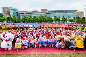「115年桃園市元旦升旗典禮」1日上午於龜山區長庚養生文化村大草坪盛大登場,活動特別邀請民歌歌手施孝榮登台獻唱,以渾厚溫暖歌聲為新年揭開序幕;國軍二一砲指部官兵進行巨幅國旗展旗,展現磅礡氣勢;樂天女孩則帶來「催落曲」...