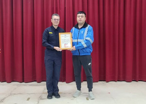 桃園市警局楊梅分局27日下午2時30分於二樓大禮堂,舉行「好人好事」表揚活動,公開肯定楊梅區大同里民王宥騏在11月10日台鐵埔心至楊梅站間平交道事故中,奮不顧身救人的義舉。市議員鄭淑方、李家興議員服務處秘書、周玉琴議員服...