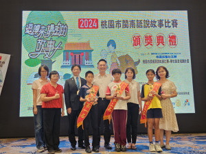 桃園市副市長蘇俊賓18日參加「2024桃園市閩南語講故事比賽頒獎典禮」,第三屆的「閩南語講故事比賽」除了青年組、國小組、幼稚園組,還特別新增銀髮組,讓年滿65歲以上的長者也有機會上台表現。蘇...