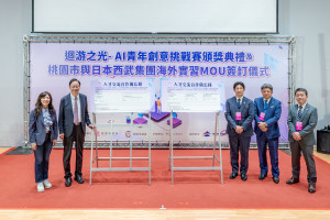 桃園市長張善政24日下午前往市立圖書館,出席「洄游之光-AI青年創意挑戰賽頒獎典禮及桃園市與日本西武集團海外實習MOU簽訂儀式」。張市長表示,實習是青年瞭解產業運作與探索職涯方向的重要管道,市府期待透過跨國合作,使學生能...