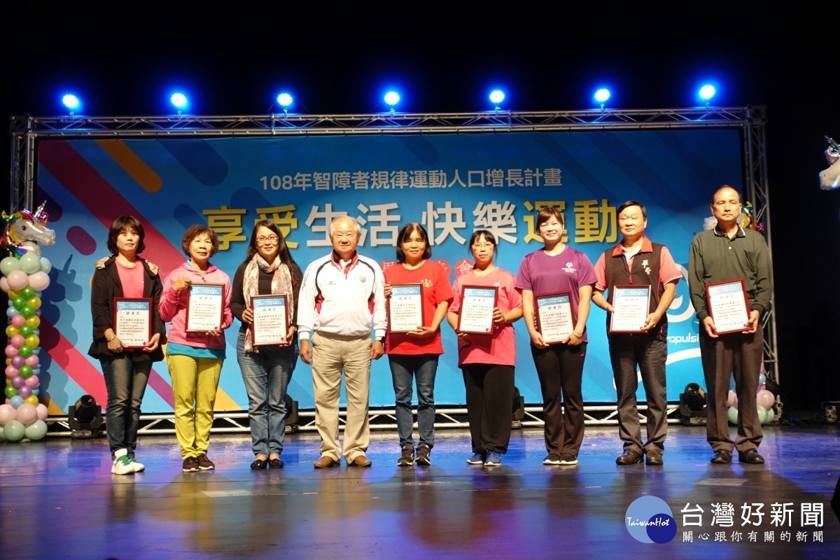 在教育部體育署經費挹注及指導下,中華台北特奧會主辦的「108 年智障者規律運動人口增長計畫~享受生活、快樂運動成果發表會」,於今(27)日下午在嘉義縣表演藝術中心隆重演出,近 180 位智能障礙人士演出,另外有將近 100 位智能障礙人士及家庭成員共同參與活動,展現本年度為期 10 個月、每周 2-4小時教練指導下有規律認真練習的成果,場面盛大。