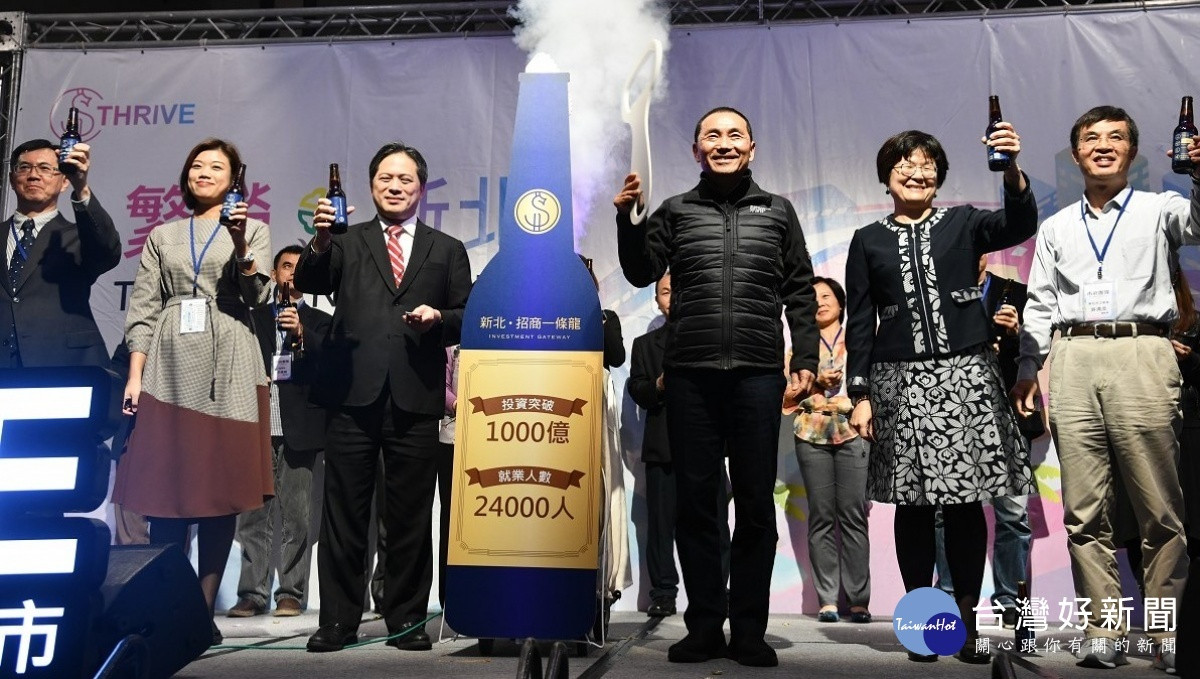 新北市政府今年拚招商,1,000億投資目標,已提前於10月底達標,市長侯友宜29日晚間特別在板橋希爾頓酒店舉行招商感恩酒會