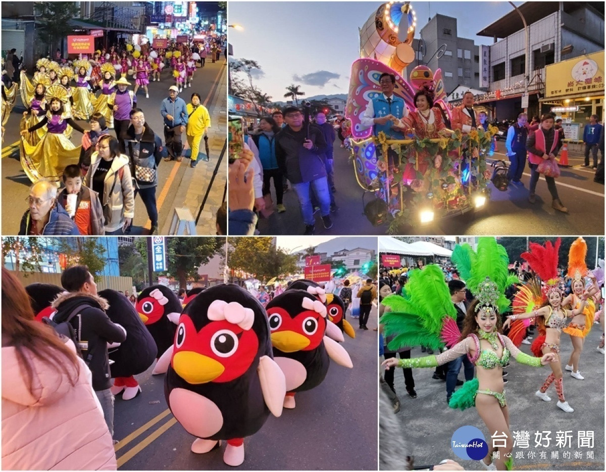 在礁溪市區登場的「2019冬戀蘭陽溫泉季」千人踩街嘉年華,所到之處熱鬧滾滾。(圖/陳木隆攝)