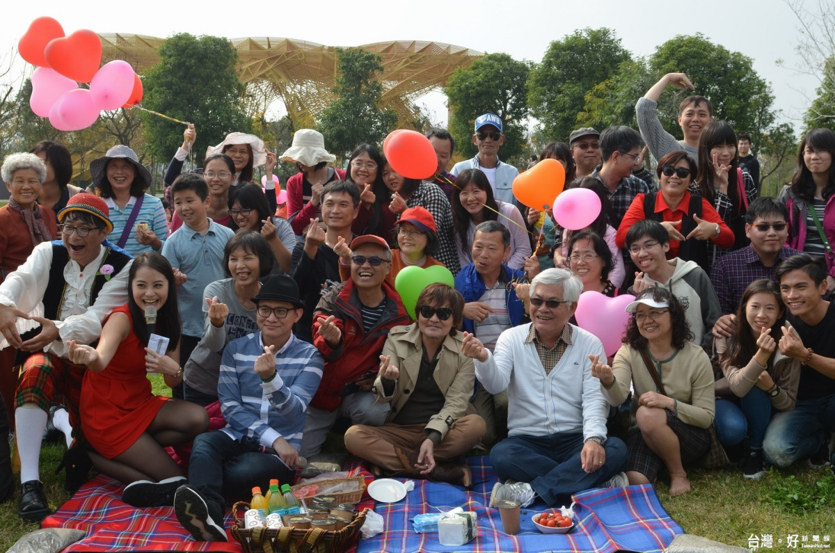 圖說:李縣長在「猴愛你」情人節草地音樂會與大家同樂,並比出「愛心手勢」。(記者蘇榮泉攝)