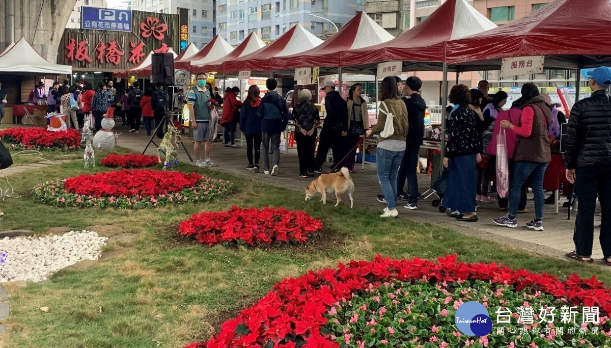 板橋區公所21日於板橋花市舉辦「歡慶聖誕趴~愛心競標」活動,公所結合花市攤商的愛心聯手作公益