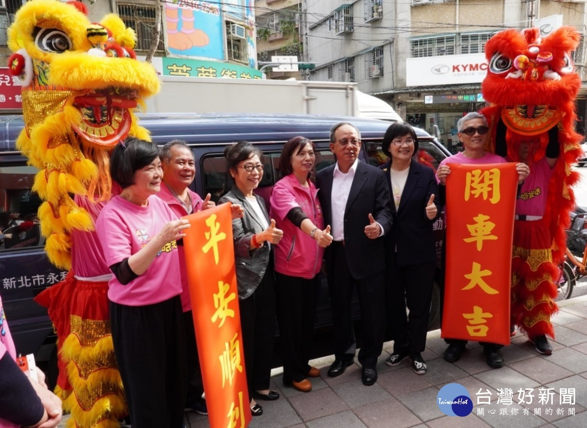 新大皇建設公司董事長賴瑞昌25日捐贈1輛銀髮行動服務車給新北市政府,透過新北市好日子愛心大平台媒合,該車將提供永和區民權社區發展協會做為接送社區照顧關懷據點長輩之用,民權社區發展協會理事長邱秀蘭表示,這台車大大滿足了我們的需求,未來據點將努力服務更多長輩,讓這份愛心傳遞千里。