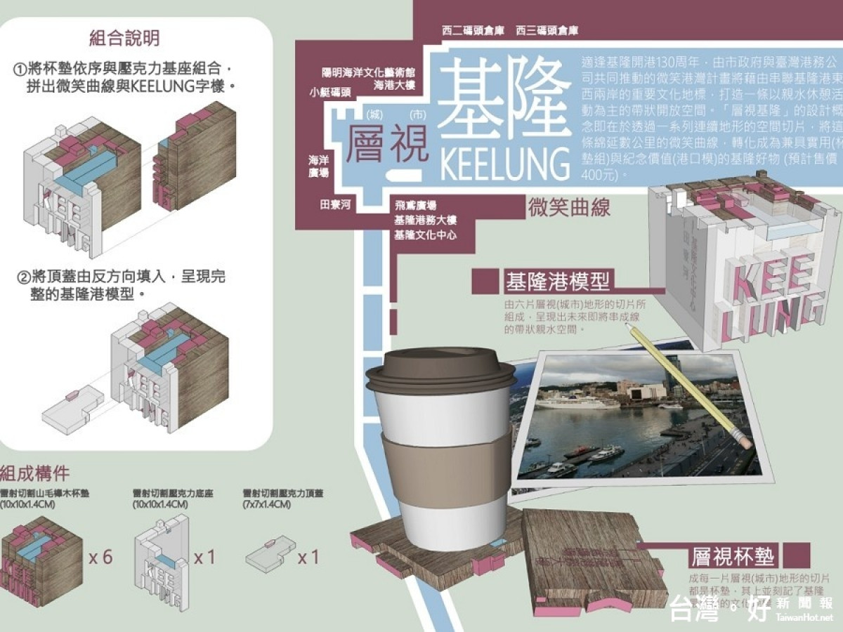 彭俊亨指出,今年「基隆好物」設計競賽首獎是知音文創的「城市音樂鈴-基隆廟口」、貳獎是陳盈竹的「層視基隆」、參獎是藍子宜的「一騷船」;另外佳作之一的「開炮」則是本市崇右技術學院學生黃寗云的作品。