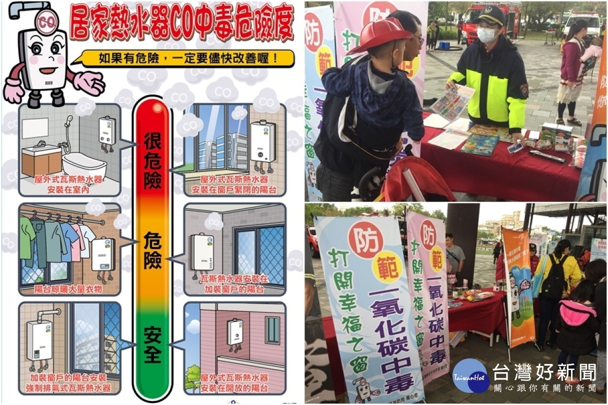 消防局表示,因一氧化碳無色無味,吸入後會與血紅素結合,使細胞缺氧,產生頭暈、想吐、四肢無力等症狀,若有一氧化碳中毒跡象,請立即停止使用燃氣熱水器,打開通往戶外的窗戶通風,身體嚴重不適者,請儘速就醫,相關知識可參酌內政部消防署網站:https://www.nfa.gov.tw/cht/index.php?code=list&ids=284)。