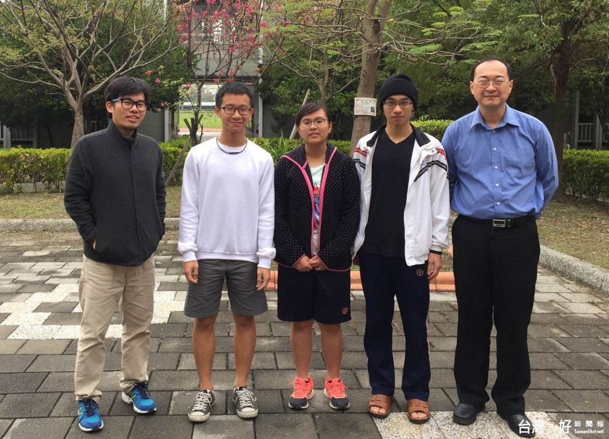 圖說:特教組長林子賀〈左起〉、學生張佑任、廖翎雅、劉彥甫三人及教務主任張志祥,希望把喜悅與幸運繼續傳給同窗好友。(記者蘇榮泉攝)
