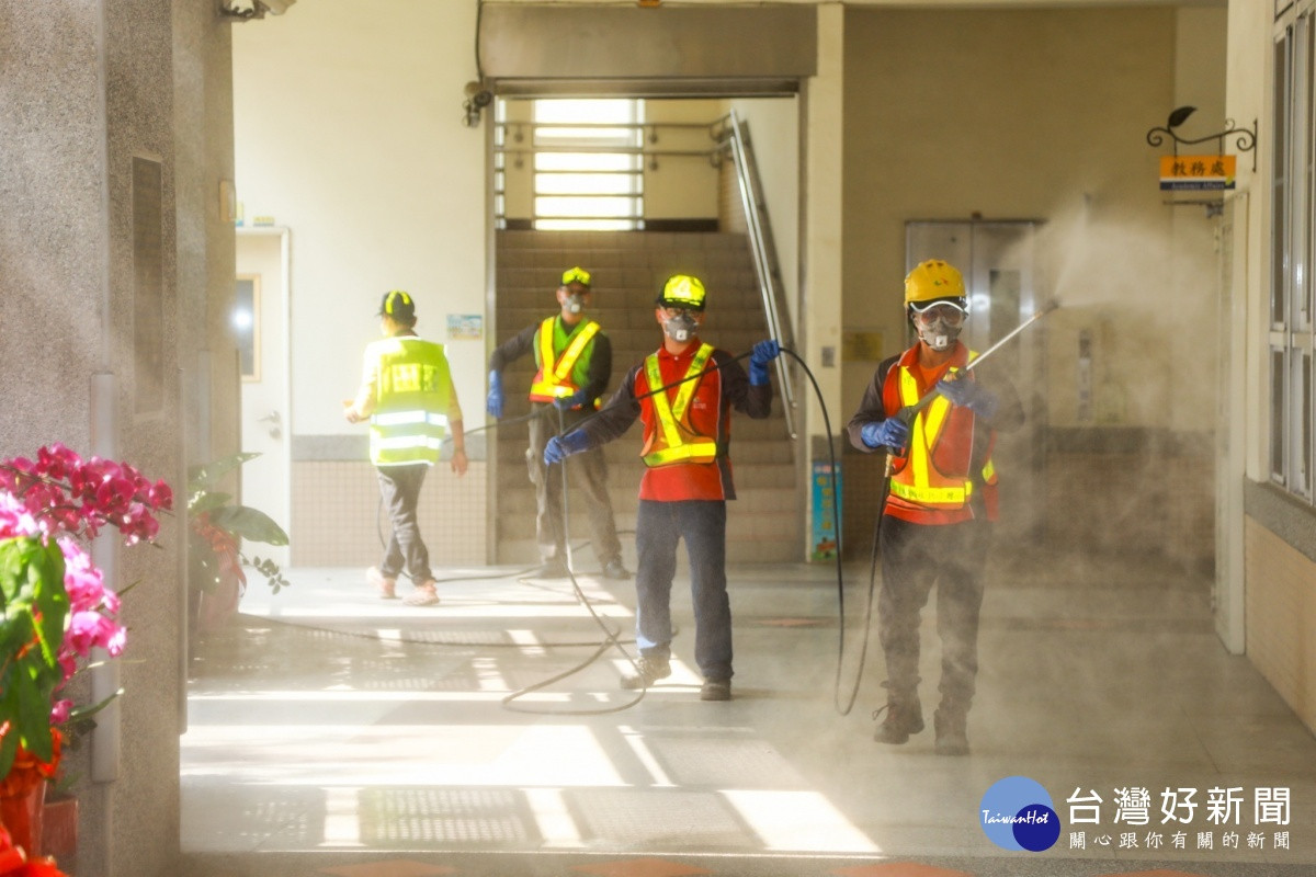全台各校開學在即,因應新冠肺炎疫情,台中市政府針對全市419所公立高中、國中小及幼兒園,以及45所私立高中及國中小,共464所公私立學校展開消毒作業,預計25日開學前全數完成,目前進度已達85%,希望在開學前夕讓學童安心、家長放心。