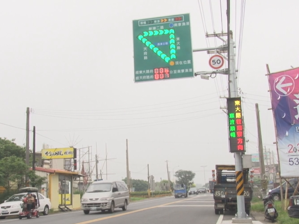 新竹市替代路徑導引系統,在去年五月設置,經過將近一年的實際運作也獲得不錯的成效,民眾利用東大路前往南寮,可以藉由圖像化資訊了解目前的所需要的行車時間,大大減少塞車和等待的狀況。