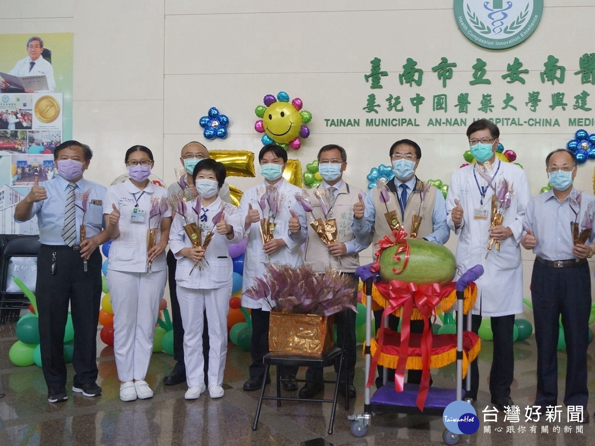 黃偉哲市長特地精挑肉多汁美大西瓜要來好好慰勞醫護人員們,增強抵抗力和體力才能繼續未來每一天的抗疫工作,還特地視察最近才設置不久的組合屋防疫門診,讚賞院方以病人為中心快速設置防疫門診,提升感染管制規格外也做好醫病雙方的保護。