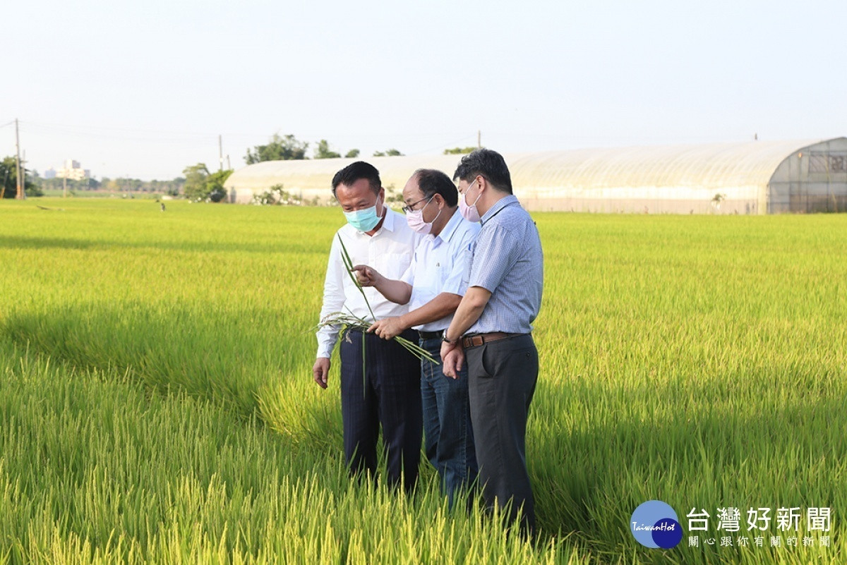 嘉義縣長翁章梁與台南區農業改良場副場長羅正宗今日前往鹿草勘查水稻生育狀況,翁章梁表示,近期嘉義地區水稻陸續開始抽穗,呼籲農友加強清除田間稻熱病感染源,防治稻熱病應超前佈署,在抽穗前3到5天完成預防性施藥,以確保收成產量。