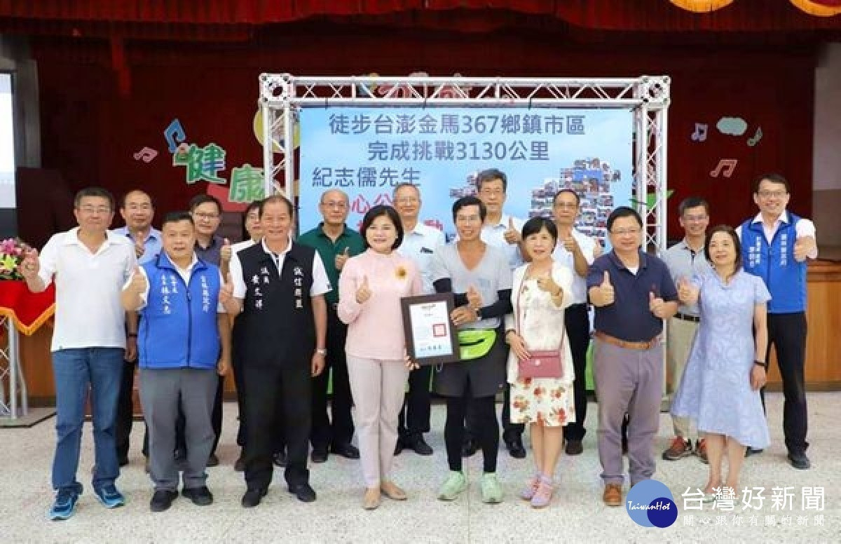 雲林縣水林鄉旅外優秀子弟紀志儒,自鴻海科技集團副總經理職務退休後,花了將近75天以「愛心、信心、決心」徒步環島,憑藉堅強毅力與雙腳徒步3130公里,踏遍全臺367鄉鎮市區,14日在水林鄉長許山埜陪同下,自北港鎮公所回到水林鄉,並捐贈100萬元給縣府、水林鄉公所及鄉內各級學校,縣長張麗善代表接受並頒發感謝狀。