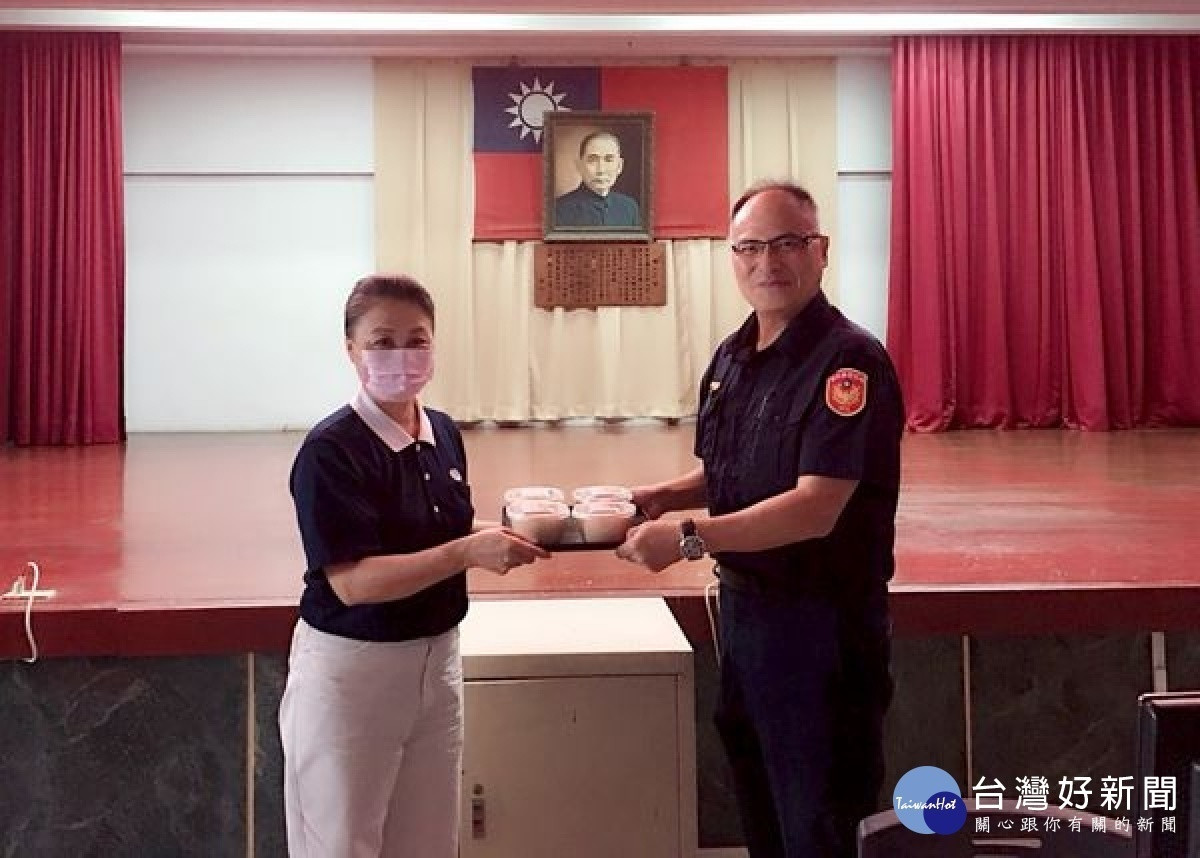 佛教慈濟基金會雲林北港辦事處為感謝警察在防疫期間,總是站在第一線協助與守護,特別製作125個素食便當分送給北港警分局員警享用,由分局長王立德代表受贈。