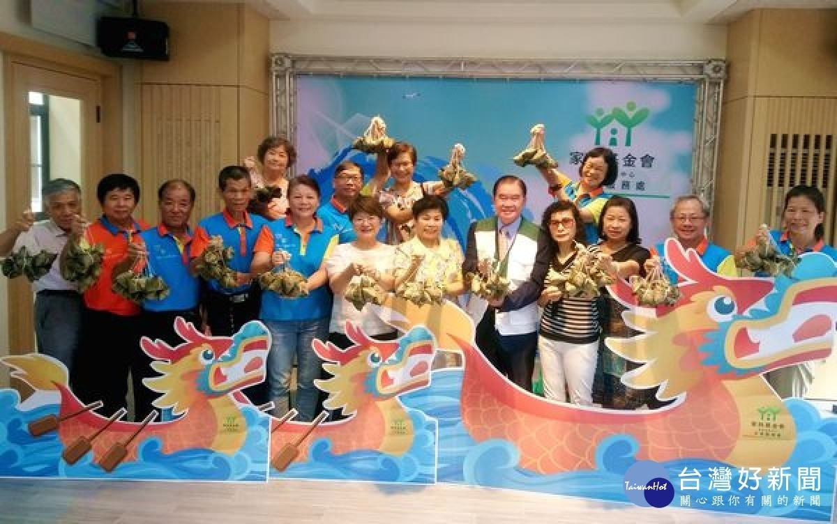 育達慈善會、育達獅子會與家扶董事蕭文龍在端節前夕,為雲林家扶帶來陸上龍舟及應節粽子與芒果,還贊助14萬元於扶幼工作,陪伴家扶親子歡慶佳節。