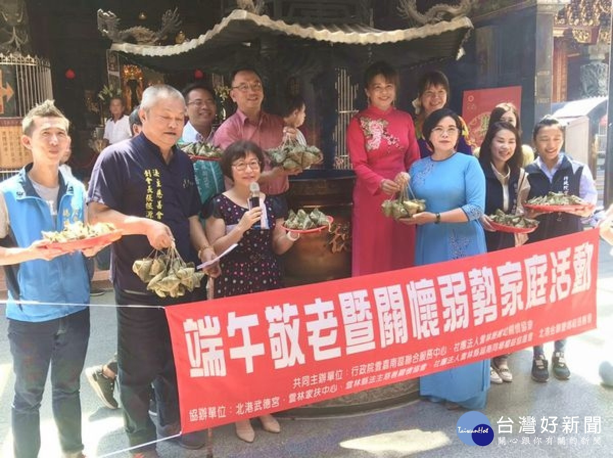 婦幼關懷協會與行政院雲嘉南服務中心及縣議員蔡岳儒等,邀集北港武德宮等慈善團體,包製四千顆財神加持的「平安粽」,分送弱勢家庭歡度佳節。