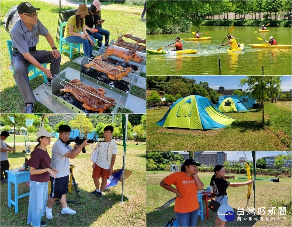 適逢學校放暑假,校長許壬榮特別在22日率同該校教職員工及部分學生,到園區體驗烤肉、獨木舟、BB槍射擊、攻防箭等活動,包括縣議員陳文昌、上島食品董事長陳家昇、台東專科學校前校長姚國山等人,也都到場同樂。