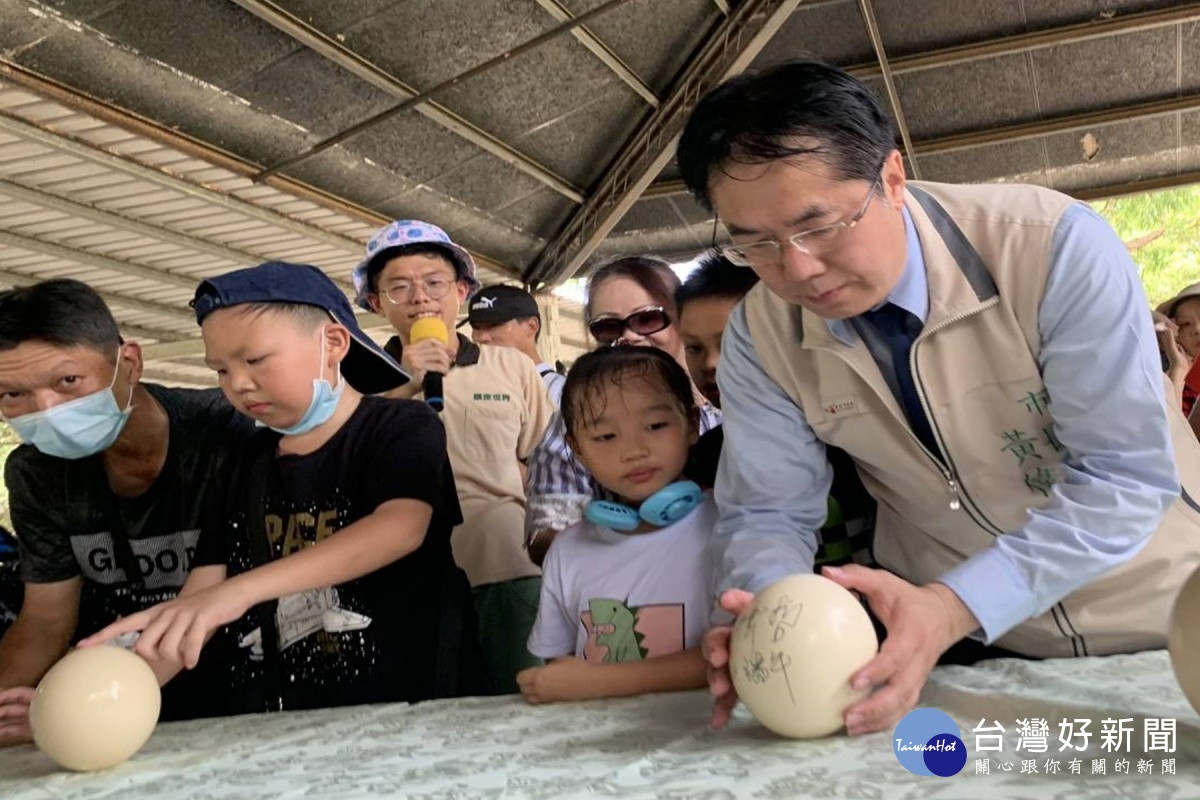 黃偉哲表示,為了參賽,在家拿雞蛋練習很多次,但鴕鳥蛋和雞蛋的手感不同,穩定雙手把鴕鳥蛋立起,沒想到只要放手,鴕鳥蛋也隨之歪倒,蛋大顆並不見得好立起。為了鼓勵黃市長用心良苦,園方送1顆鴕鳥蛋,希望市長有空多練習,相約明年再來參加,一雪前恥,一試成功。