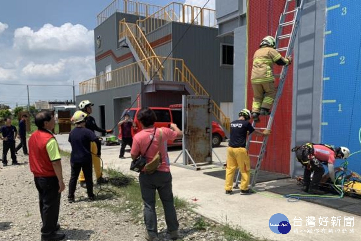 為強化救災能量及活用救災技巧,台南市政府消防局於新化訓練中心辦理繩索救援裝備器材教育訓練。消防局長李明峯指出,消防局採購一批繩索救援裝備,為讓大家熟悉操作技能,透過專業救助教官教導繩索技術、安全確保、防墜及雙繩系統等技巧,期能提升人命救助效率。