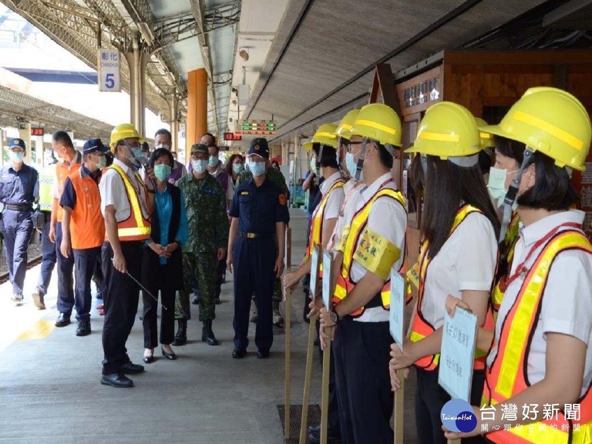彰化縣長王惠美在內政部警政署評核官、彰化縣警察局局長許錫榮等長官及貴賓陪同下,先後赴「臺鐵彰化火車站」、「中華電信彰化營運處」視察防空演練,同時彰化縣消防局支援消防人員辦理空襲時救災救護演練,彰化縣衛生局亦支援醫護人員,辦理空襲時救護站開設演練,演習中各參演人員動作純熟逼真,展現平時紮實訓練成果。