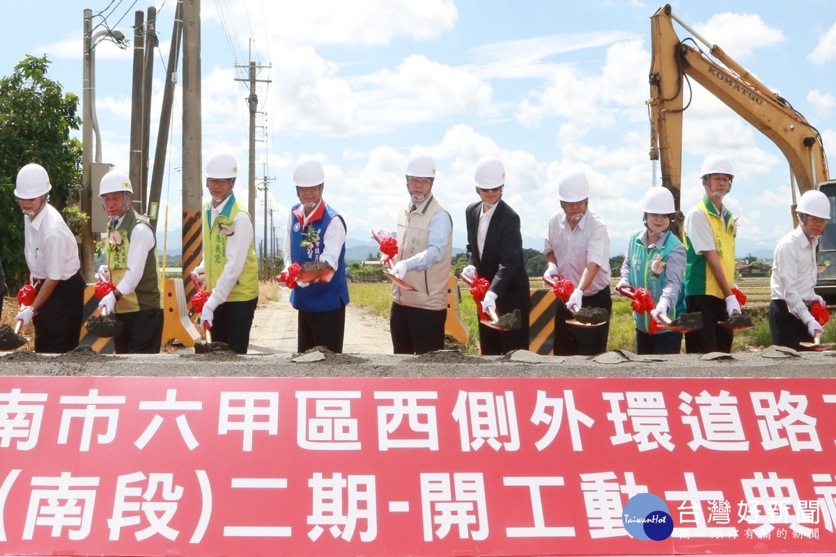 台南市六甲西側南段外環道路,連結六甲及官田地區的交通路網,總長2.48公里,分3期開發,總經費約6.36億元,第一期工程已於今年4月14日完工。第二期工程20日舉行動土典禮,預定111年3月底完工,完工後結合第一期路段,將可大幅改善目前車流壅塞情形。