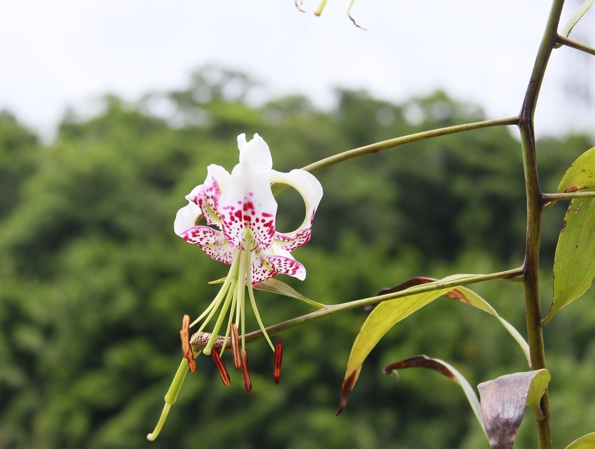 每年8-9月為豔紅鹿子百合的花期,其花朵白底帶有紅色斑點,開花方式為一瓣瓣依序開放後再慢慢向背後蜷縮,非常特別,其邊緣呈波浪狀,艷麗而燦爛,又有「天使的翅膀」、「峭壁的精靈」等雅致的別稱;農業局23日與平溪紫東社區合作辦理艷紅鹿子百合復育成果展,喚起民眾對於原生植物保育與復育的重視。