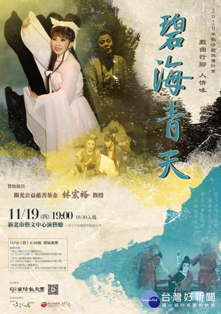 知名歌仔戲團─「蘭陽戲劇團」就要跨縣市演出了!在「陽光公益慈善基金」林宏裕教授的支持及贊助下,將於11月19日晚間7點在新北市藝文中心演藝廳,上演經典好戲《碧海青天》,歡迎戲迷們屆時進場觀賞。