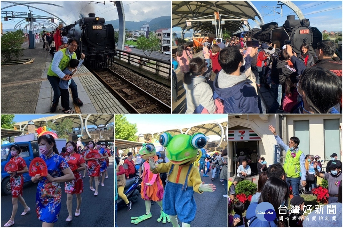 為迎接「宜蘭溪南綠色轉運亮點計畫」完工及冬山改制100周年,冬山鄉公所26日在全國最美的車站─冬山火車站及附近市區,以象徵新舊傳承及鄉運蒸蒸日上的蒸汽老火車,以及創意踩街等一系列活動大舉歡慶,現場人聲鼎沸,熱鬧滾滾。