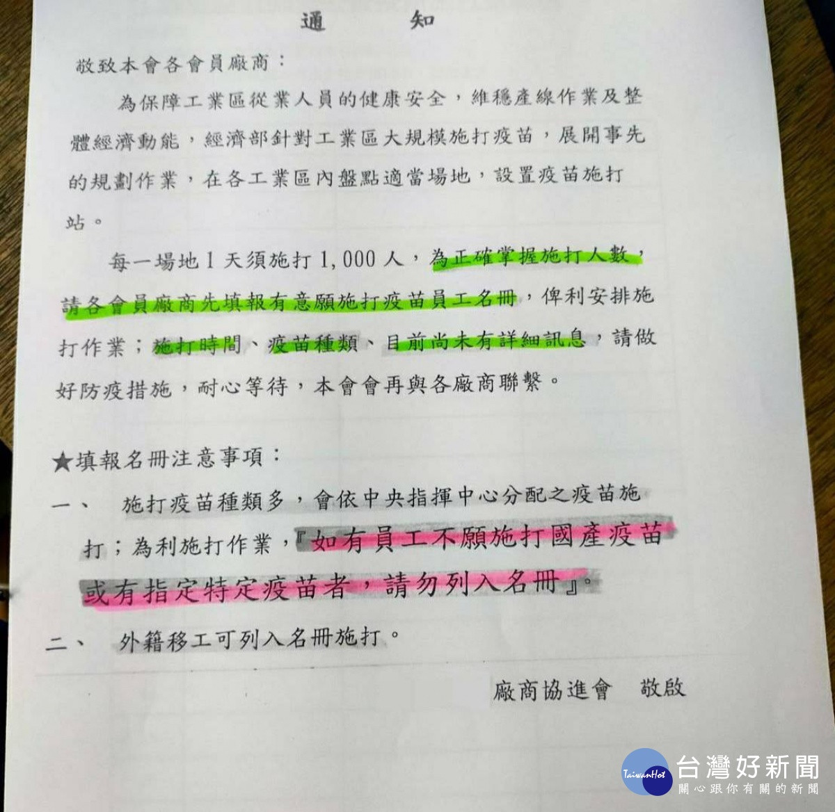 王家貞說,施打疫苗對象的重要性排序,孰輕孰重,政府都一一落實了嗎?為何要在台中工業區、嘉義朴子工業區、及台南工業區、高雄岡山本洲產業協進會及中興工業區等多數工業區,進行這種不尊重人民自由意志施打的意願調查呢?讓整個工業區的員工們心理充斥著強烈自我表態的精神壓力,同時整個工作環境也瀰漫著一股不安、猜忌的氣氛。