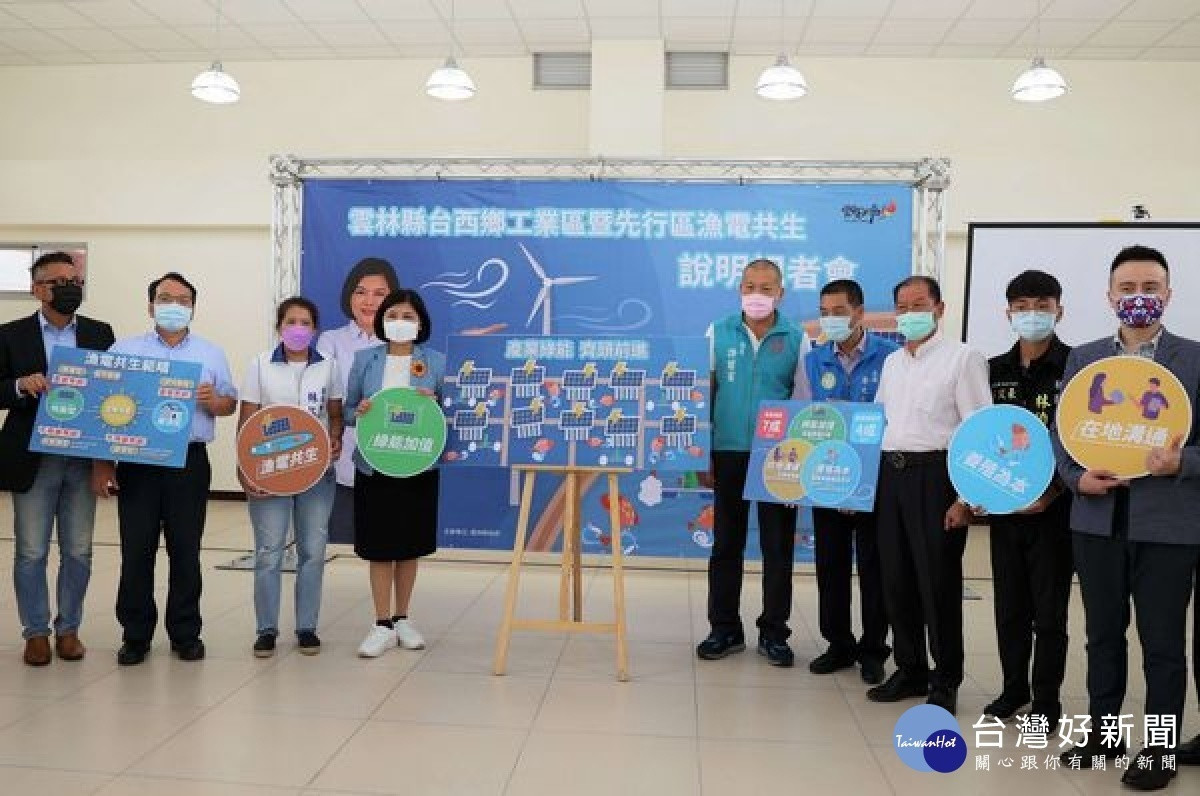 雲林縣政府配合中央持續推動綠能產業,並致力產業、綠能、生態的三贏措施,亦將眼光放遠國際,朝向綠色供應鏈的綠能城市,縣長張麗善及建設處長李俊興13日於台西鄉公所,與推動漁電共生的魚塭養殖鄉親及能源業者們,共同宣誓致力推動地方產業與綠能結合,帶給雲林縣更有國際觀、在地產業興盛、地盡其利等優勢,創造雲林縣綠能亮點。