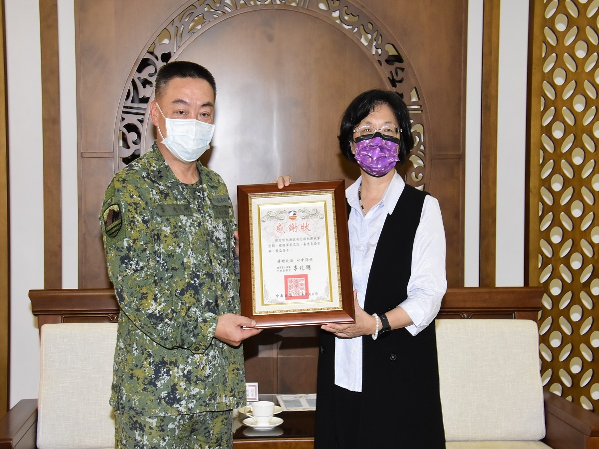 為感謝平時國軍弟兄保鄉衛國及對地方救災、防疫清消等工作的協助,彰化縣長王惠美於8日上午由民政處長賴致富、彰化軍人服務站長劉訓誠等人陪同,至陸軍十軍團(第五作戰區)興中山莊,與十軍團指揮官李中將等駐軍單位及新兵訓練中心代表座談交流,並致贈中秋節加菜金計20萬元。王惠美感謝各駐軍單位及新兵訓練中心對縣籍子弟兵、彰化縣民及縣境安全維護的付出與奉獻,有國軍弟兄們辛勤付出,成為縣民強力的後盾,彰化的縣政建設也才得以順利推動發展,向國軍弟兄致上最崇高的敬意與溫馨的祝福,以表達對國軍的支持與鼓勵。