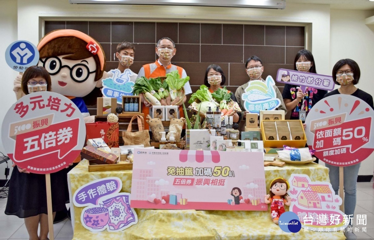 勞動力發展署桃竹苗分署向民眾推薦轄區多元商品,只要持5倍券至合作店家消費,勞動部即加碼50%。