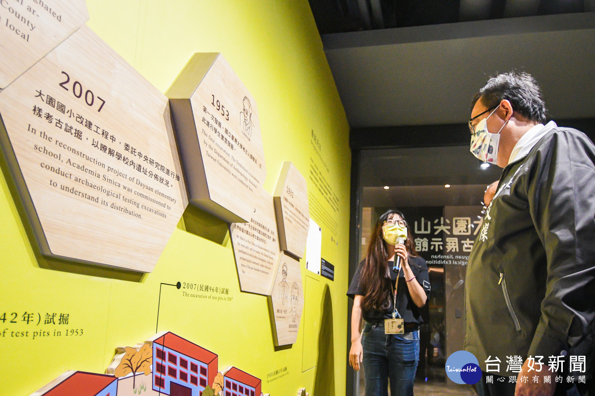 桃園市長鄭文燦30日下午前往橫山書法藝術館,出席「大園尖山考古展示館」開幕音樂會。鄭市長表示,「大園尖山考古展示館」位於「橫山書法藝術館」C棟地下一樓,典藏從大園國小到航空城開發階段,陸續出土將近10萬件的文物,在「大園尖山考古展示館」之外,部分出土文物也存放在航空城聯合服務中心的展示館,未來在航空城計畫完成後,將擇適當場址正式成立「大園考古遺址博物館」完整展出,籌備處則預計於111年中掛牌啟用。鄭市長說明,透過「大園尖山考古展示館」的展覽內容,民眾可認識到在台灣人渡過黑水溝、大園移民來到許厝港之前,已經有史前人類在這裡生活並留下許多遺跡,藉此也更加認識我們所身處的土地與歷史。