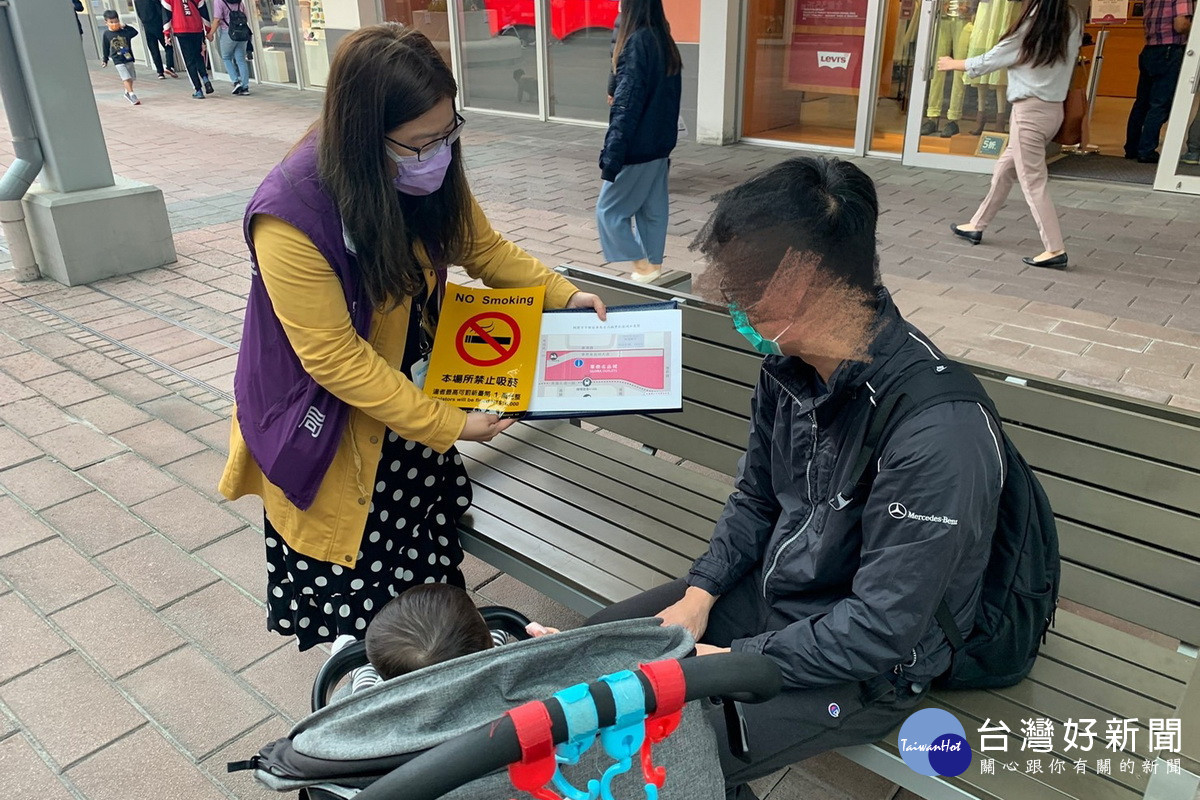 營造無菸購物環境,桃園市政府衛生局針對華泰名品城之戶外休憩區及所屬周邊禁菸區域進行強力執法。
