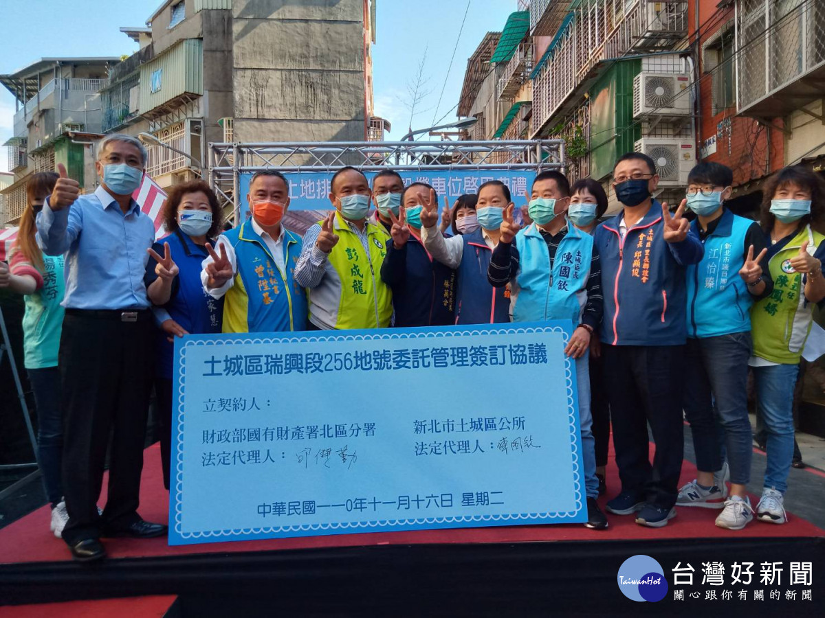 土城區公所為解決國有地長期被占用及紓解停車需求,瑞億市場旁800平方公尺大違建經拆除整地,現已改造成108個機車停車位,於(16日)完工啟用,並與國有財產署簽署認養協議。啟用典禮由土城區長陳國欽主持,有在地議員林金結、彭成龍等民代以及里長和里民數百人參加,場面盛大,熱鬧滾滾。