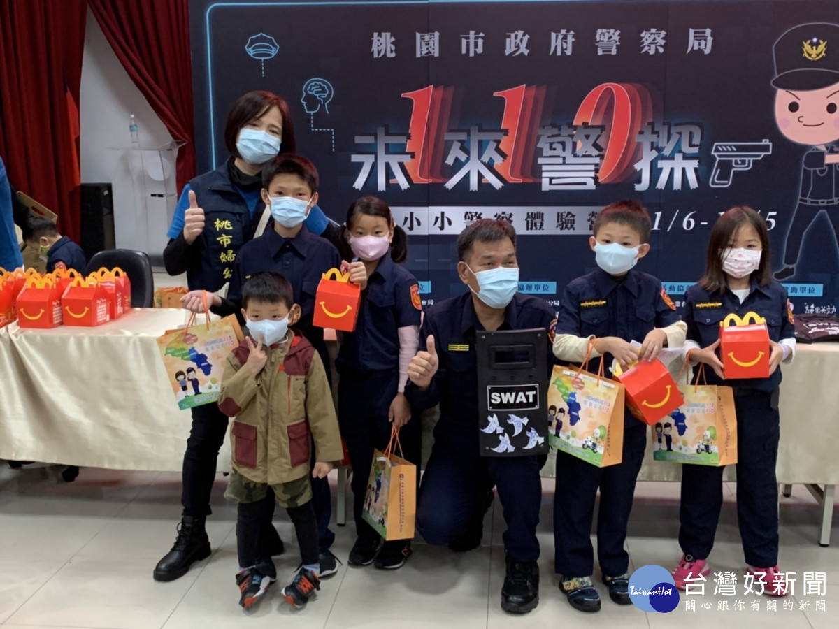 桃園市政府警察局婦幼警察隊與楊梅分局27日下午,共同舉辦110年小小警察體驗營「110未來警探」活動,今年規模有別於以往,是以「110未來」為主題,融入治安與交通等宣導議題,規劃各項闖關、解謎活動、密室逃脫遊戲,結合「VR實境模擬」虛擬射擊,讓參加的孩子們不僅穿上小小警察制服,更體驗員警帥氣的模樣以及平日出勤的緊張與未知感。