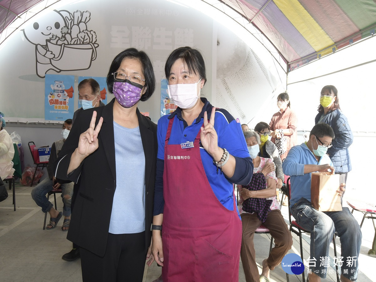 縣長王惠美表示,彰化縣第一劑疫苗覆蓋率已超越80%,第二劑也已超越60%,希望鄉親能更有保護力,朝至少第二劑疫苗覆蓋率80%的目標邁進,謝謝全聯及家樂福的協助,提供場地及贈品,今天在每個施打站的前150名,衛生局都有加贈100元的禮券,全聯、家樂福也都加碼贈送贈品,讓鄉親可以就近方便來施打,過年即將到來,屆時還會有許多返鄉的鄉親,也可能是比較高風險的時期,拜託大家多出來施打疫苗,提升保護力。