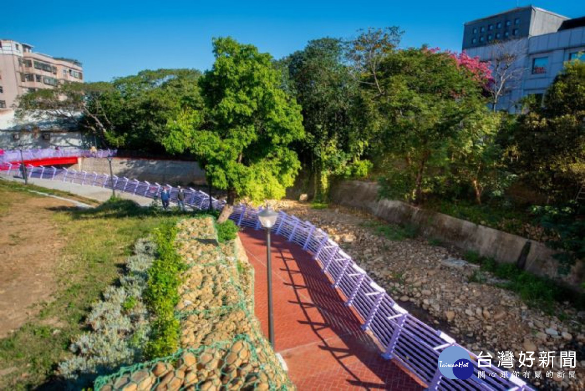 劉局長並說,本案採取生態友善原則,設計階段進行生態調查與檢核;施工階段則以「迴避」、「減輕」、「縮小」、「補償」方式施工,作法包括:保留既有植栽、鳥類棲息空間;採太空包設置圍堰,減少水源汙染;就地取河道內的石材作為石籠擋土,減少使用混凝土;將公有土地改造為景觀花園等;完工後也進行復育生態,白鷺鷥及翠鳥紛紛來到河岸棲息,兼顧生態保護的親水生態景觀綠廊,盼鄉親多加使用。