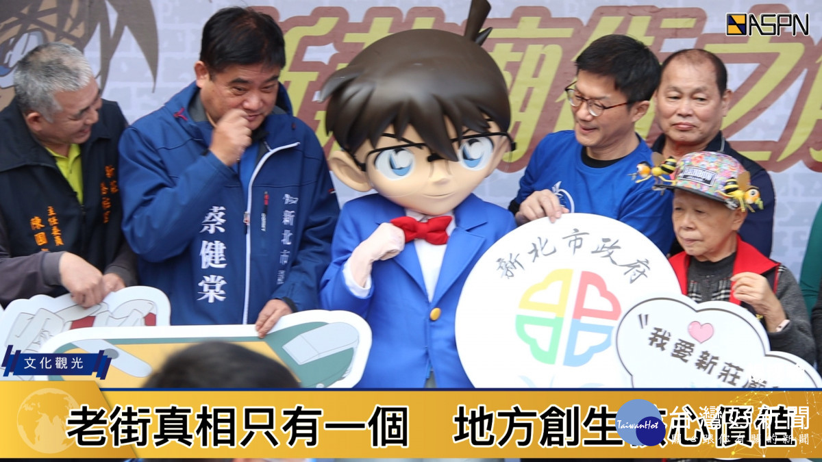 新莊廟街熱鬧滾滾,慈祐宮前勁歌熱舞,舞台上的辣妹賣力演出,台下則出現熟悉的動漫身影,原來是名偵探柯南,現身老街。透過民眾熟悉的卡通角色,現場爭相合照外,並在當地玩起實境解謎。