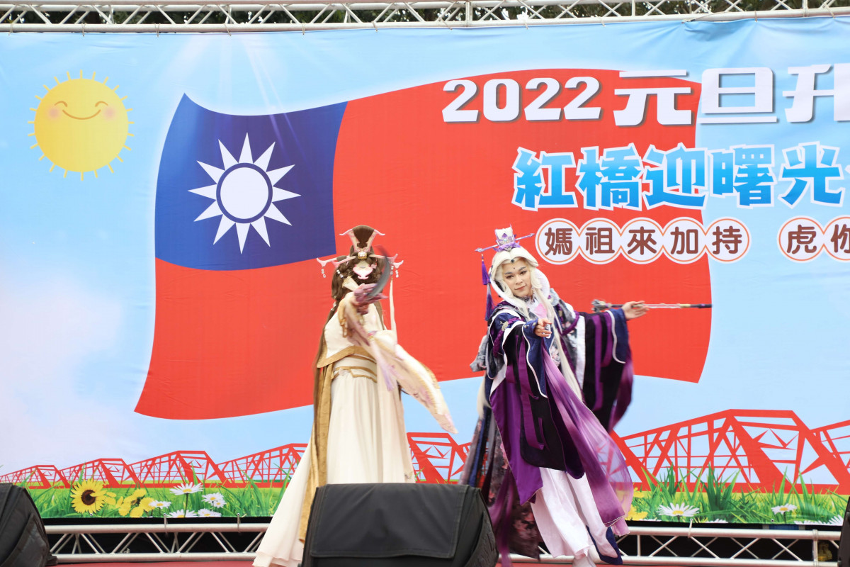 升旗前健走在紅橋上迎接開春第一道曙光,更有西螺興宮太平媽親自坐鎮於大橋頭讓參與民眾獲得太平媽加持保佑,更請到金曲獎台語歌后朱海君領唱國歌、霹靂布袋戲素還真及葉小釵cosplay表演、歌手劉昱賢及咚咚舞蹈社等熱鬧演出。
